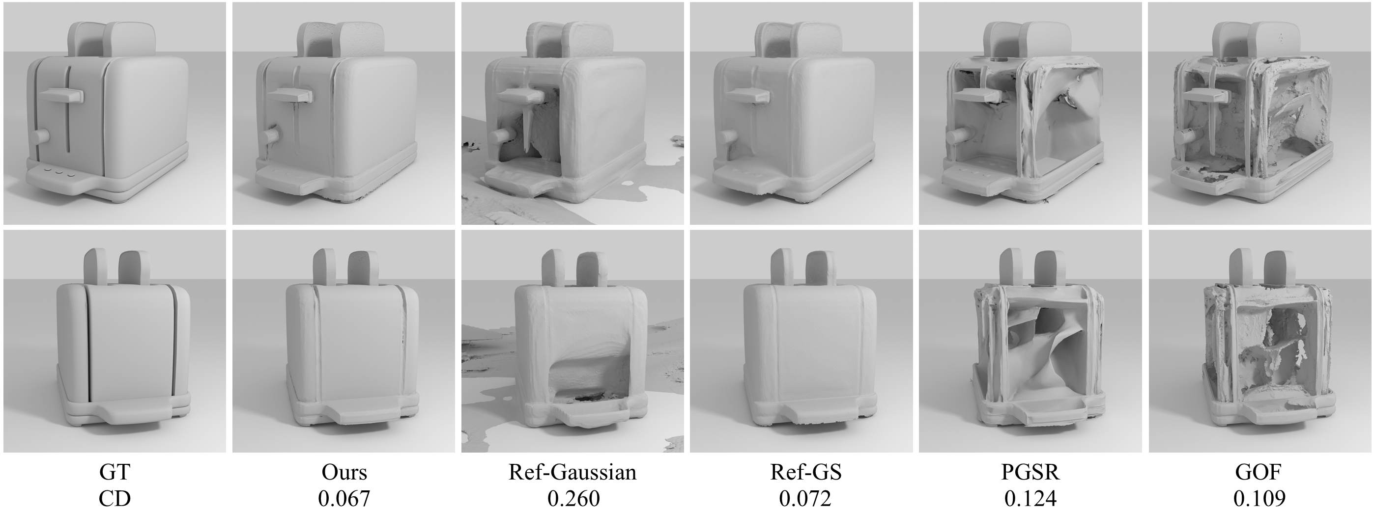 including progressively decayed depth supervision and transformed normal constraints. Extensive experiments on both synthetic